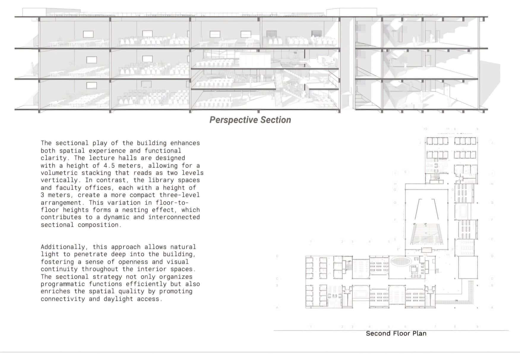 What sets this campus apart, however, is its thoughtful sectional planning. The architecture employs mezzanine levels, double-height interaction zones, and semi-open terraces to create a layered spatial experience. These sectional shifts encourage movement, engagement, and visual connectivity across levels—turning circulation corridors and stairwells into active learning zones. Informal breakout areas tucked into these interstitial spaces offer students opportunities to collaborate, relax, and interact outside structured classrooms.