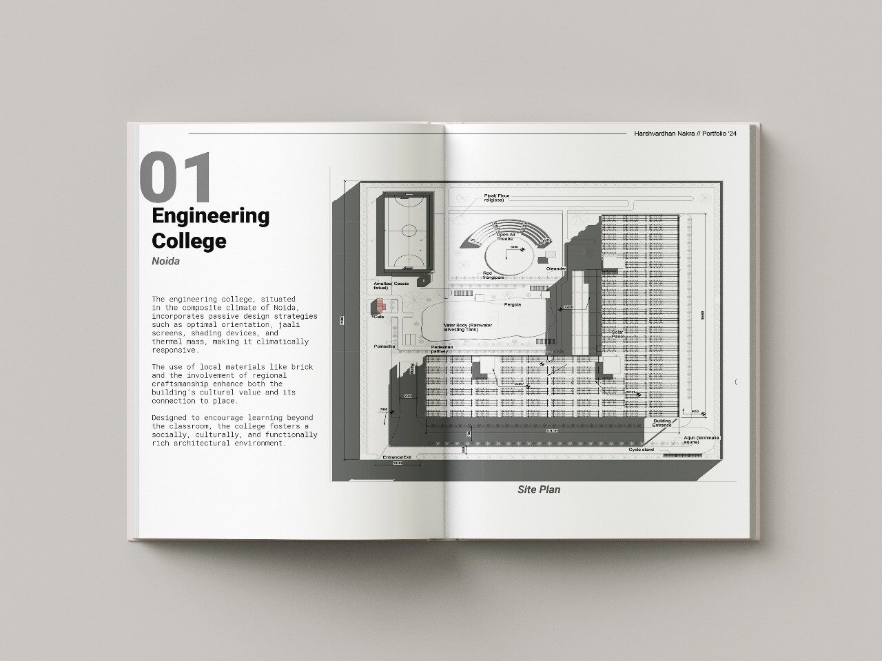 Set in the composite climatic zone of Noida India, this engineering college reimagines the conventional academic typology by grounding itself in the principles of passive design, regional identity, and spatial inclusivity. Designed not just as an institution for technical education, but as a dynamic social environment, the project explores how architecture can foster community, comfort, and curiosity beyond the confines of the classroom.