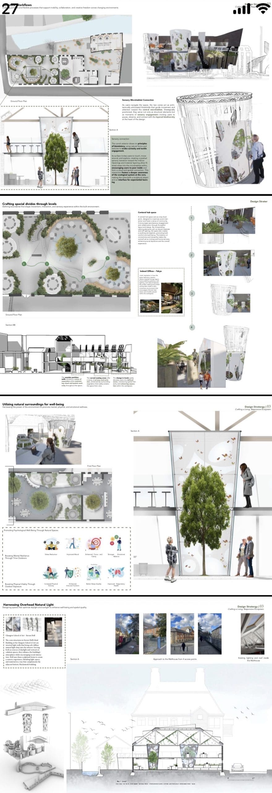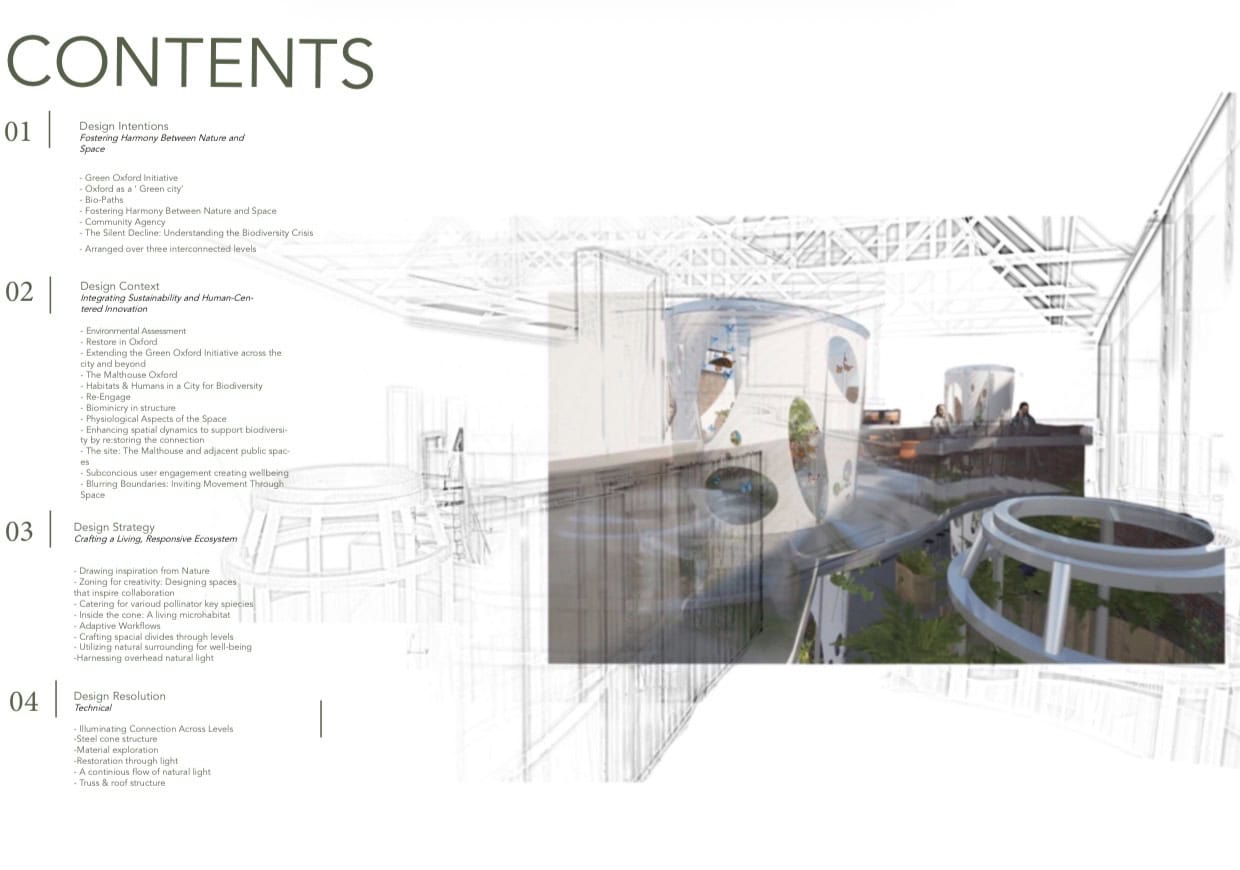 Here is Olivia Tranters final year design project centered around the theory of biominicry and biophilic introducing a micro habitat within an office environment to increase overall wellbeing and productivity