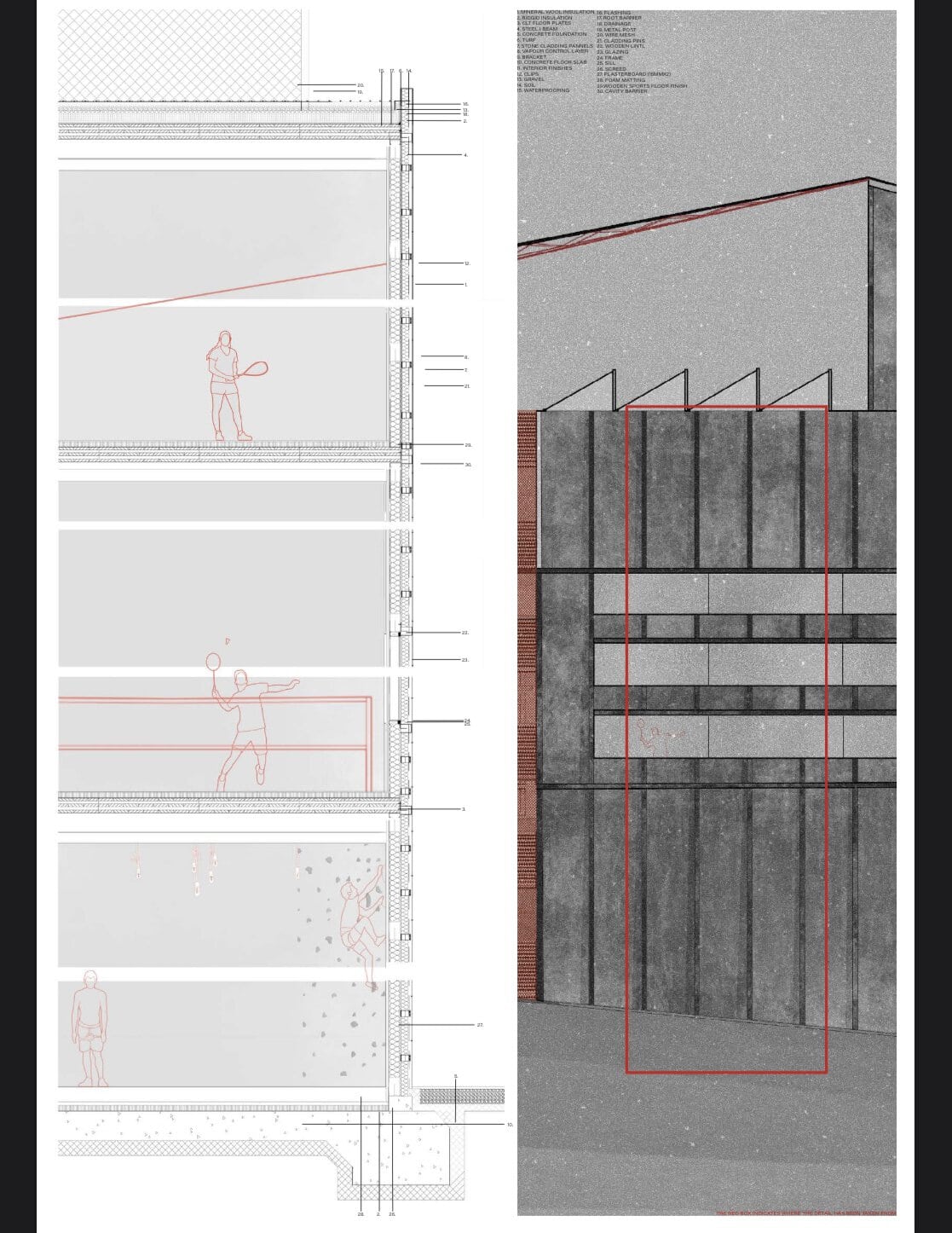 These specific sports were selected due to their inaccessibility in the surrounding area, positioning the centre not only as a place for exercise, but as a catalyst for discovery and personal engagement. The architectural strategy supports this by fostering transparency, overlap, and interactivity between programmes, breaking down psychological and physical barriers to participation.