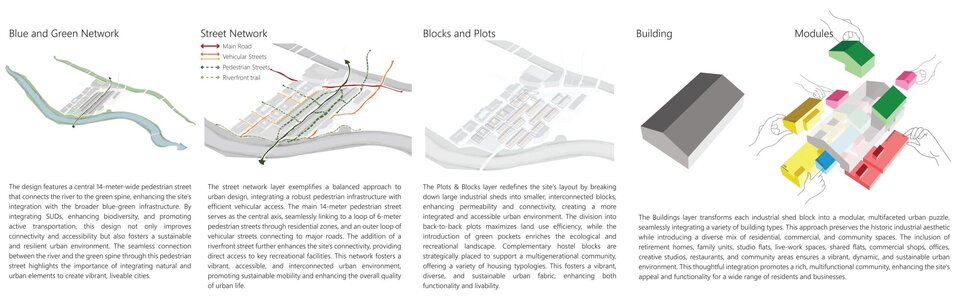 Central to Divya’s project is the belief that architecture should serve as a bridge—not a barrier—between history and contemporary urban life. Urban Mosaic transforms redundant industrial sheds into a network of mixed-use spaces, expertly blending workshop studios, family housing, communal gardens, and social nodes under a shared sustainable vision.