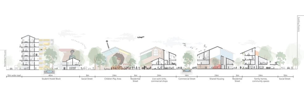 As cities across the UK grapple with economic shifts and pressing environmental demands, the adaptive reuse of the built environment has emerged as a vital architectural strategy. In Urban Mosaic, Divya tackles the challenging question: how can we transform underutilized industrial spaces into neighbourhoods that foster social connection, ecological resilience, and intergenerational belonging?